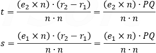 e2, the values of t and s will assure us that line PQ is the shortest line despite the fact that we choose initially two