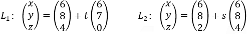 L1: (1 , 3 , 0) and L2: (3 , −1 , 1)