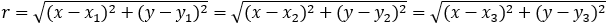 The circumcircle radius can be found by calculating the distance of the center point (x , y) from any one of the triangle vertices: