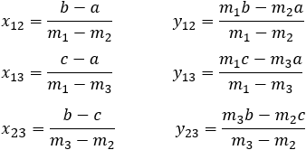 Intersection points of the sides according to Cremer’s rule or by substitution method.